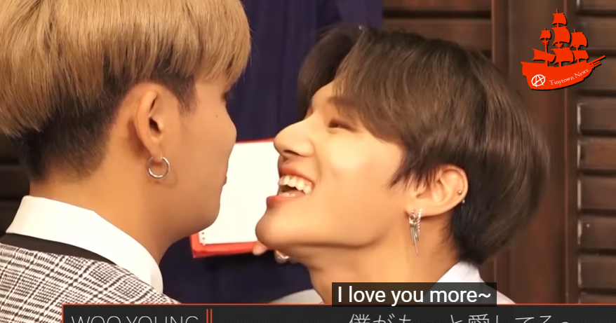 Sometimes, though, being openly and overly affectionate with each other can make some of the members cringe or break into laughter, which is exactly what the challenge in the “I Love You” game involves! In this game, which is popular in Korean entertainment, two idols face off against each other and say “I love you” back and forth until one of them breaks. In late 2019, the ATEEZ members (minus Seonghwa) played this game, hosted by Kstyle.