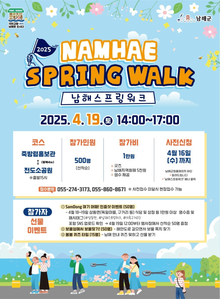 On Saturday, April 19, the city of Namhae held the 2025 Namhae Spring Walk event as a celebration of the town for citizens and visitors alike to enjoy the beauty and culture it has to offer. Various activities involving the culture of the city were offered for participants to take part in, from watching and learning about jukbangryeom (a traditional fishing method practiced in Namhae that’s designated as a National Important Fishing Heritage) to a photo event with a local restaurant, a treasure hunt, and more.